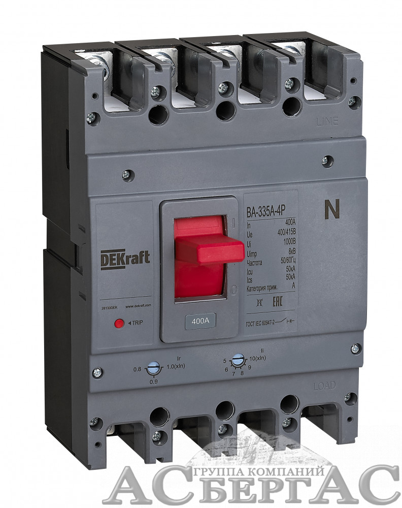 ВА-335А Автоматический выключатель 4-полюсный, 400A 50kA DEKraft