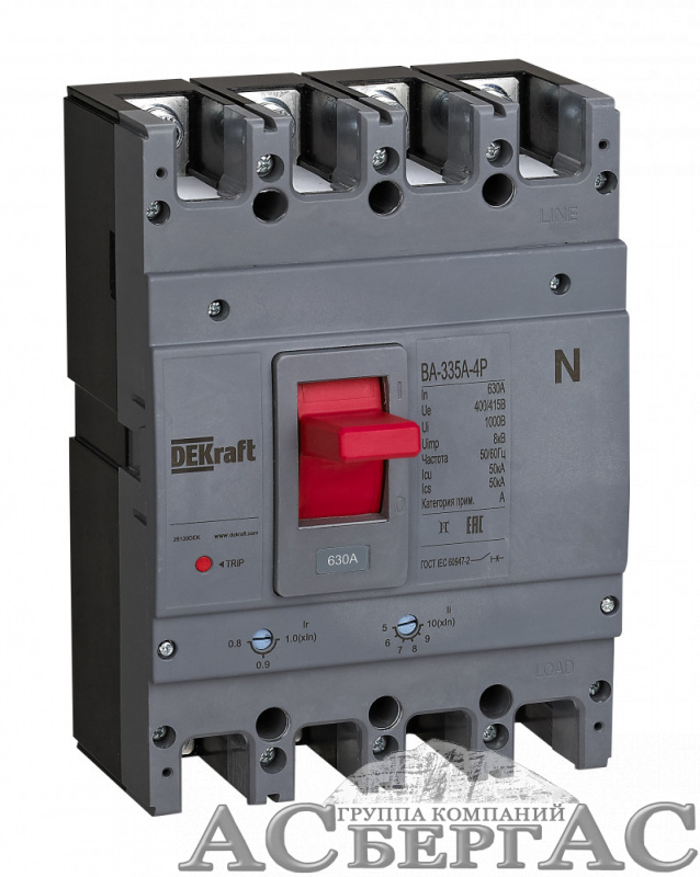 ВА-335ААвтоматический выключатель 4-полюсный, 630A 50kA DEKraft
