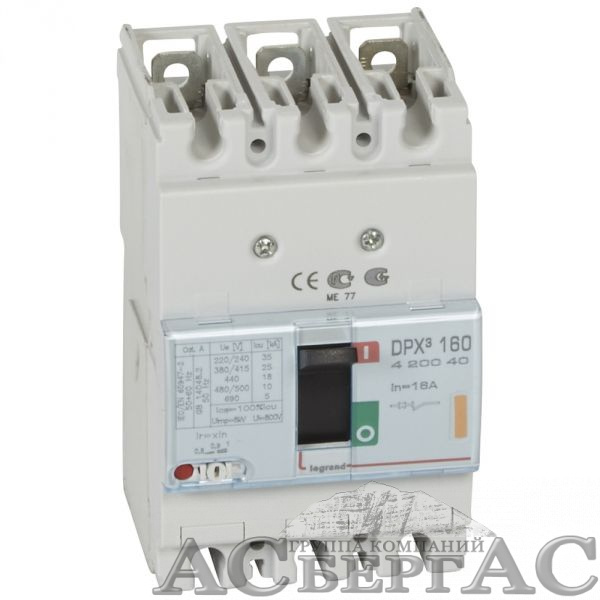 DPX3 160 Термо-магнитный 3-полюсный автомат 16А, 25kA Legrand