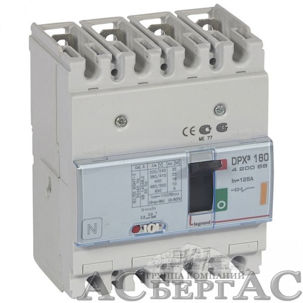 DPX3 160 Термо-магнитный 4-полюсный автомат 125А, 25kA Legrand