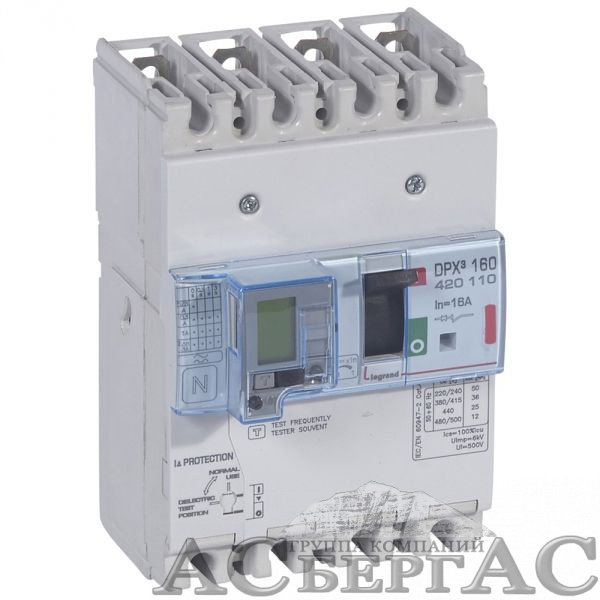 DPX3 160 Термо-магнитный 4-полюсный автомат с дифф. защитой 16А, 36kA Legrand