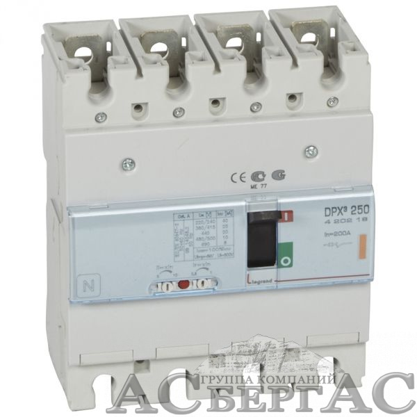 DPX3 250 Термо-магнитный 4-полюсный автомат 200А, 25kA Legrand