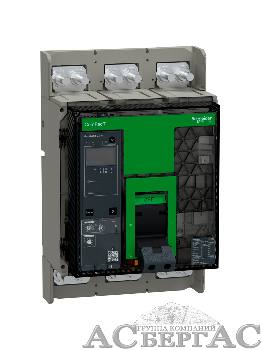 NS1000H Автоматический выключатель 3-полюсный, 1000А, MIC 2.0A, 70 kA Schneider Electric