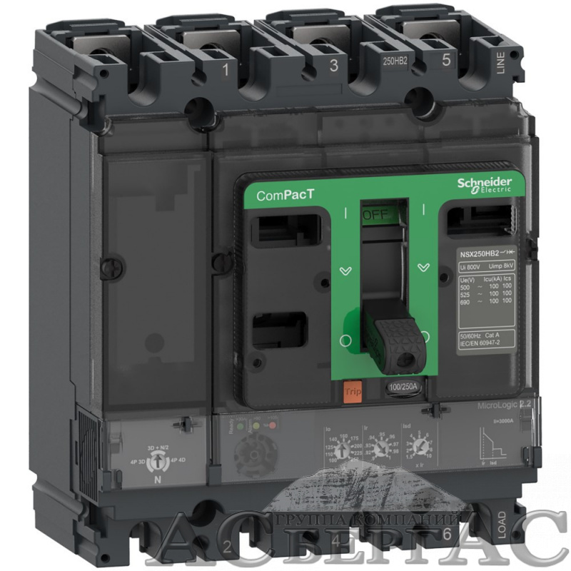 NSX100R 4P MIC.2.2 40 Автоматический выключатель 4-полюсный, 40А200kA Schneider Electric