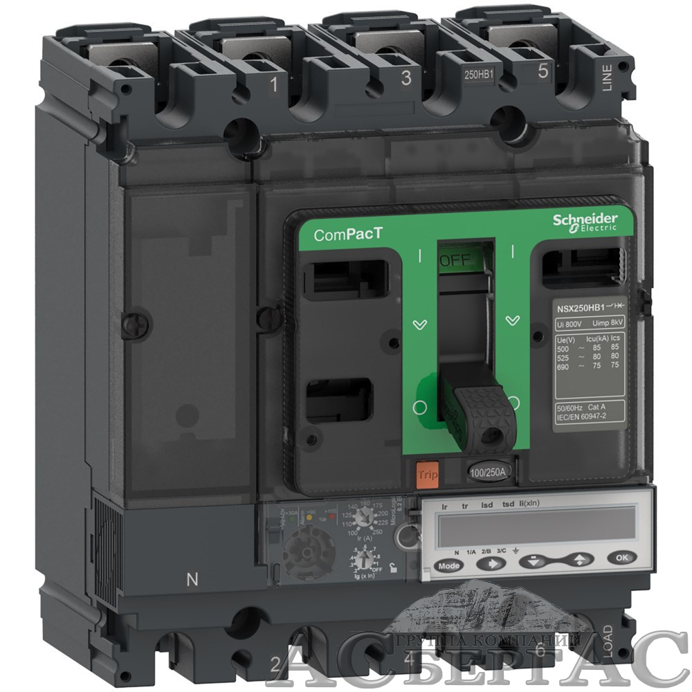 NSX100HB1 4P MIC.6.2E 40 Автоматический выключатель 4-полюсный, 40А,75kA Schneider Electric