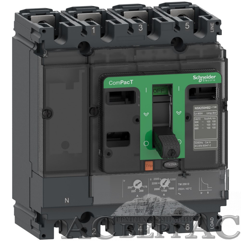 NSX250F 4P3D TMD 160 Автоматический выключатель 4-полюсный, 160А,36kA Schneider Electric