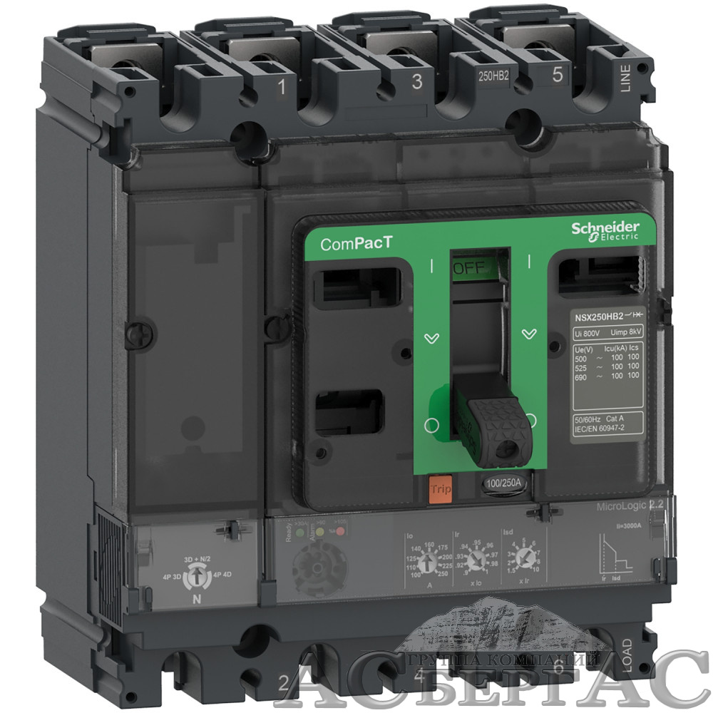 NSX250N MIC2.2 4P 100A Автоматический выключатель 4-полюсный, 100А 50kА Schneider Electric