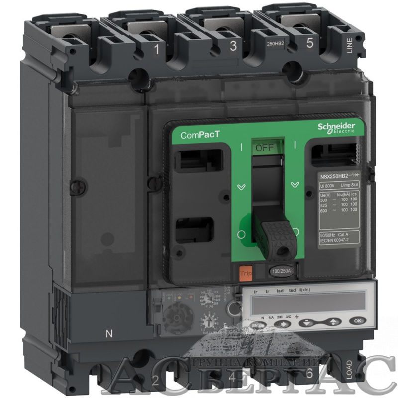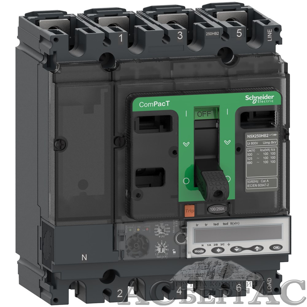 NSX250HB1 4P MIC.5.2E 100 Автоматический выключатель 4-полюсный, 100А,75kA Schneider Electric
