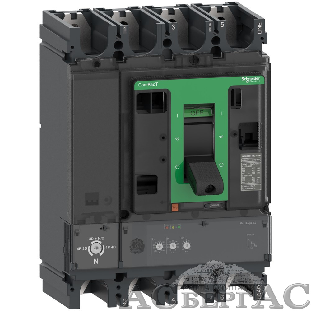 NSX630F 4P4D MIC.2.3 630 Автоматический выключатель 4-полюсный, 630А, 36kA Schneider Electric