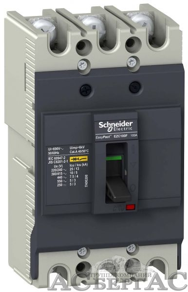 Термо-магнитный 3-х полюсный автомат 100А 18kA, подключение под шину Schneider Electric
