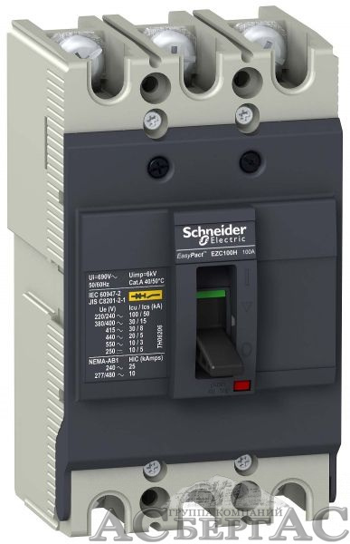 Авт. выкл. ezc100 30 ка/380 в 3п3т 15 a Schneider Electric