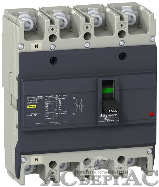 Авт. выкл. ezc250 36 ка/415в 4п3т 250 a Schneider Electric