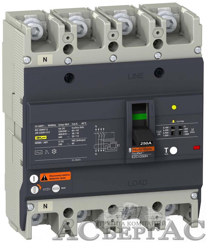 | Номин. продолжительный ток Iu | 250 |