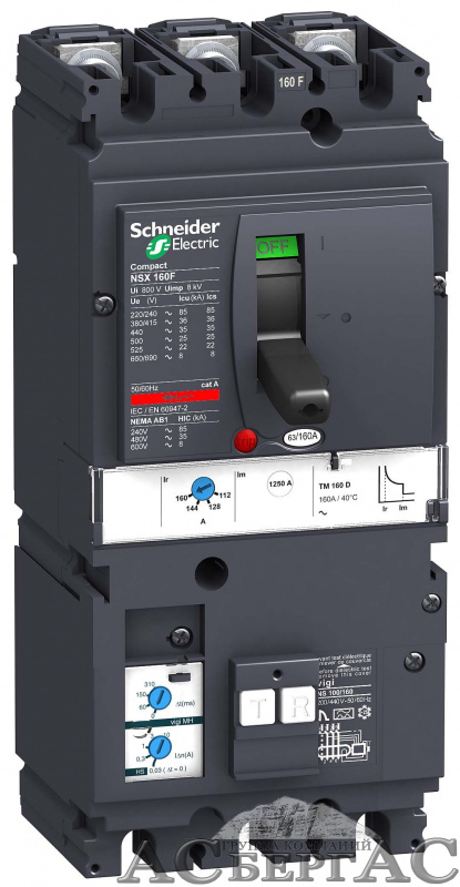 430340 NSX160B TM160D VIGI MH 3P 160А Термо-магнитный 3-пол. автомат 160А, 25kA Schneider Electric