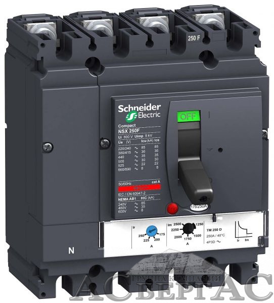 431651 NSX250F TM200D 4P 200A Термо-магнит 3х-полюс. автомат 36kA, подключ. под шину Schneider Electric
