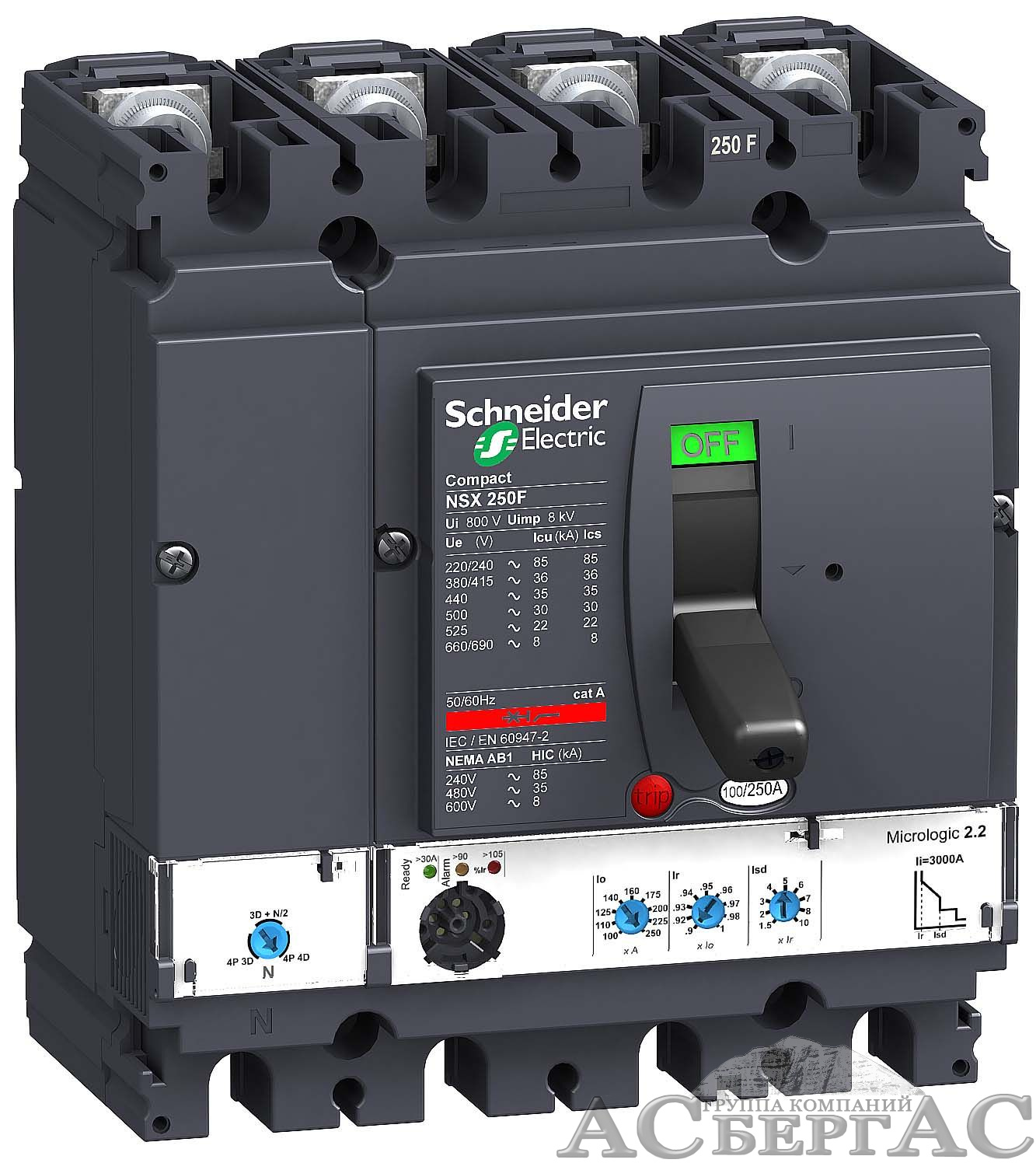 4п4т авт. выкл. micr. 2.2 250a nsx250h Schneider Electric