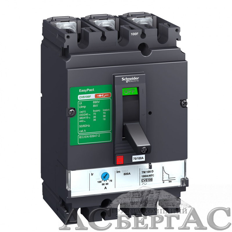 CVS 100N 3P TM100D Термо-магнит. 3х-полюс. автомат 100А 50kA, подключ. под шину Schneider Electric