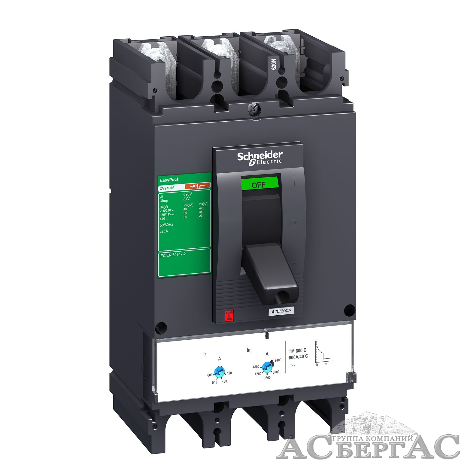 CVS 400F 3P TM400D Термо-магнитный 3-х полюсный автомат 400А 36kA, подключ. под шину Schneider Electric