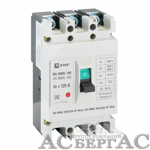 ВА-99МL 100/125А Автоматический выключатель 3-полюсный 125А 18кА EKF