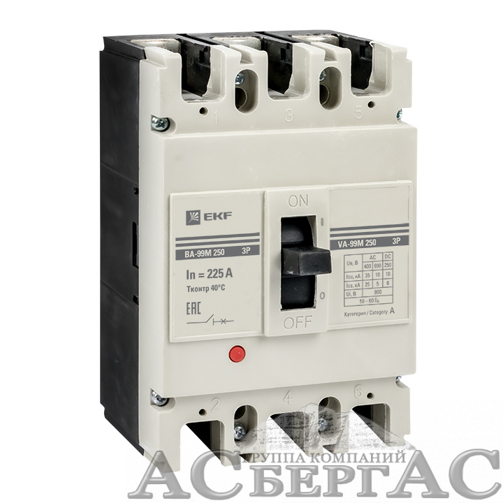 Технические характеристики и фотографии к ВА-99М Автоматический выключатель 3-х полюсны 250/225А 35кА EKF PROxima mccb99-250-225m Вы можете запросить у менеджеров отдела интернет-продаж, используя для этого удобный Вам способ связи.