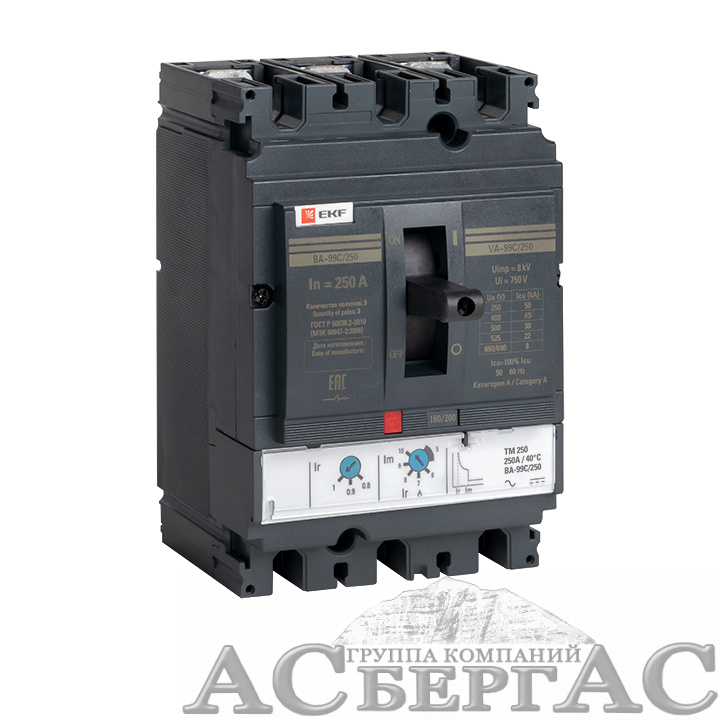 Технические характеристики и фотографии к ВА-99C Автоматический выключатель (Compact NS) 250/250А 3P 45кА EKF PROxima mccb99c-250-250 Вы можете запросить у менеджеров отдела интернет-продаж, используя для этого удобный Вам способ связи.