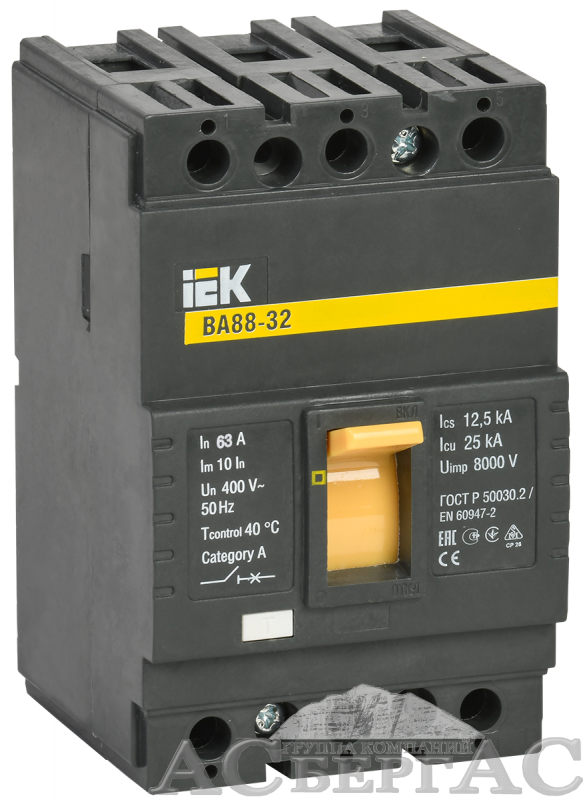 ВА88-32 3P 63А Автоматический выключатель 3-полюсный, 63А, 25kA подключение под шину ИЭК