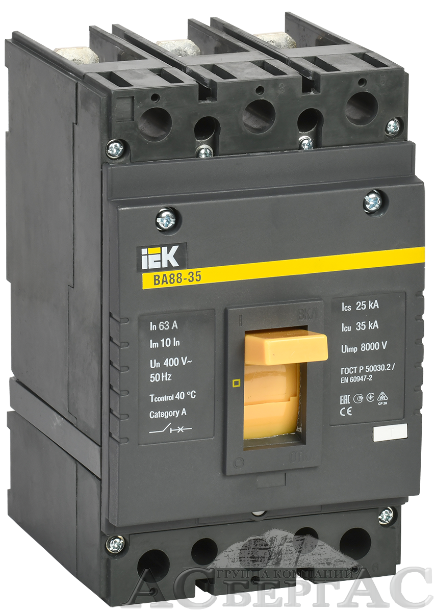 Технические характеристики и фотографии к ВА88-35 3Р 63А Автоматический выключатель 3-полюсный, 63A, 35kA подключение под шину ИЭК SVA30-3-0063 Вы можете запросить у менеджеров отдела интернет-продаж, используя для этого удобный Вам способ связи.