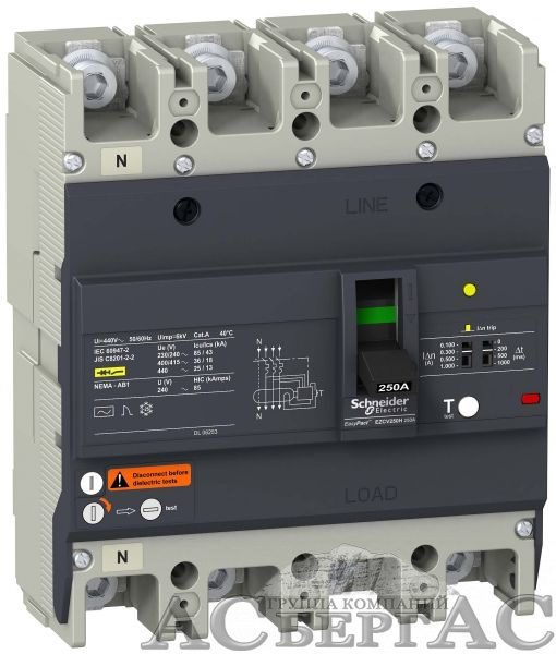 Автоматический выключатель с диф. защитой 250А, 4Р, 25кА Schneider Electric