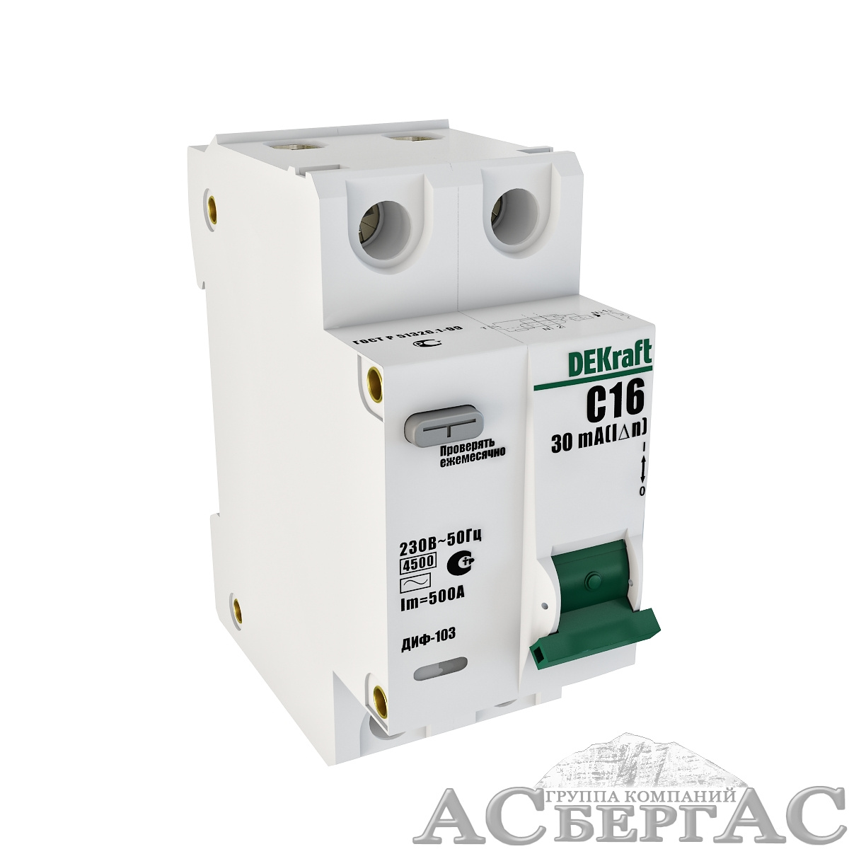 ДИФ-103 Дифф. автомат 1P+N, 20А, 30mA, тип AC, 4,5kA (хар-ка D) DEKraft