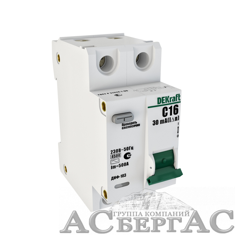 ДИФ-103 Дифф. автомат 1P+N, 25А, 30mA, тип AC, 4,5kA (хар-ка D) DEKraft