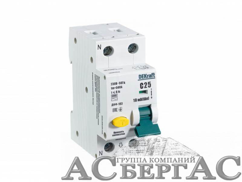 - Заменён на:ДИФ-103 NEW Дифф. автомат 1P+N, 25А, 10mA, тип AC, 6kA (хар-ка C) Dekraft
