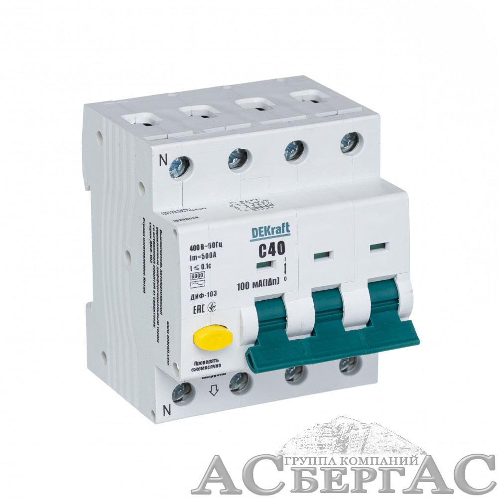 - Заменён на:ДИФ-103 NEW Дифф. Автомат 3P+N, 40А, 100mA, тип AC, 6kA (хар-ка C) Dekraft