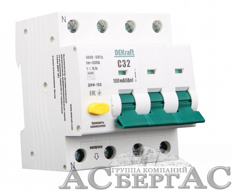 - Заменён на:ДИФ-103 NEW Дифф. Автомат 3P+N, 25А, 30mA, тип A, 6kA (хар-ка C) Dekraft