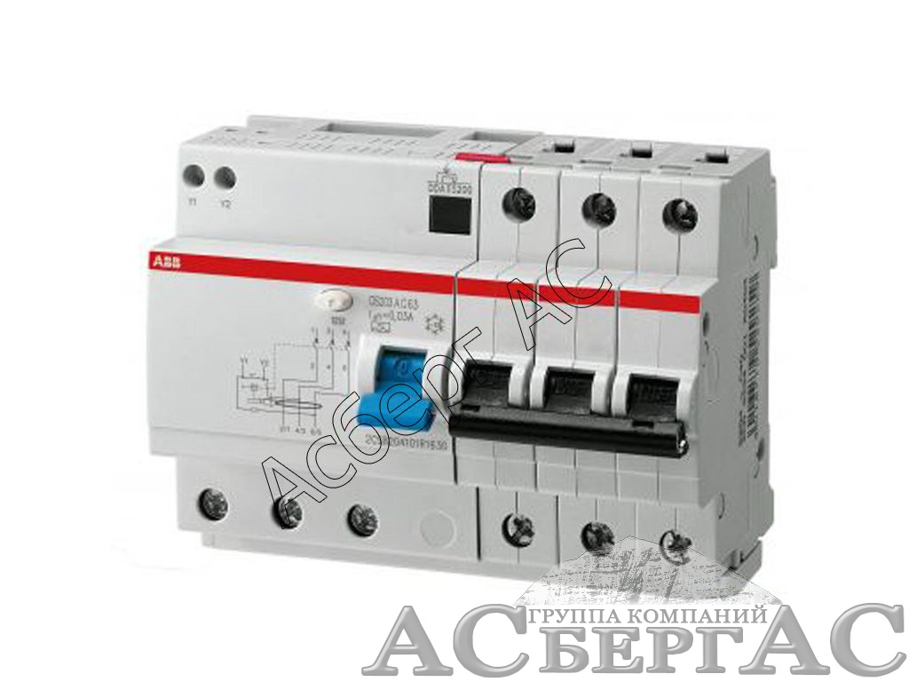 DS203 B13 AC30 Дифф. автомат 3-полюсный, 13A, 30mA, тип АC, 6kA (хар-ка B) ABB