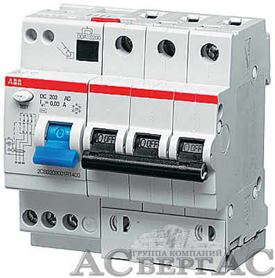 DS203 C32 A30 Дифф. автомат 3-полюсный, 32A, 30mA, тип А, 6kA (хар-ка C) ABB