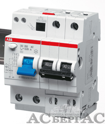 DS202 B25 AC30 Дифф. автомат 2-полюсный, 25A, 30mA, тип АC, 6kA (хар-ка B) ABB