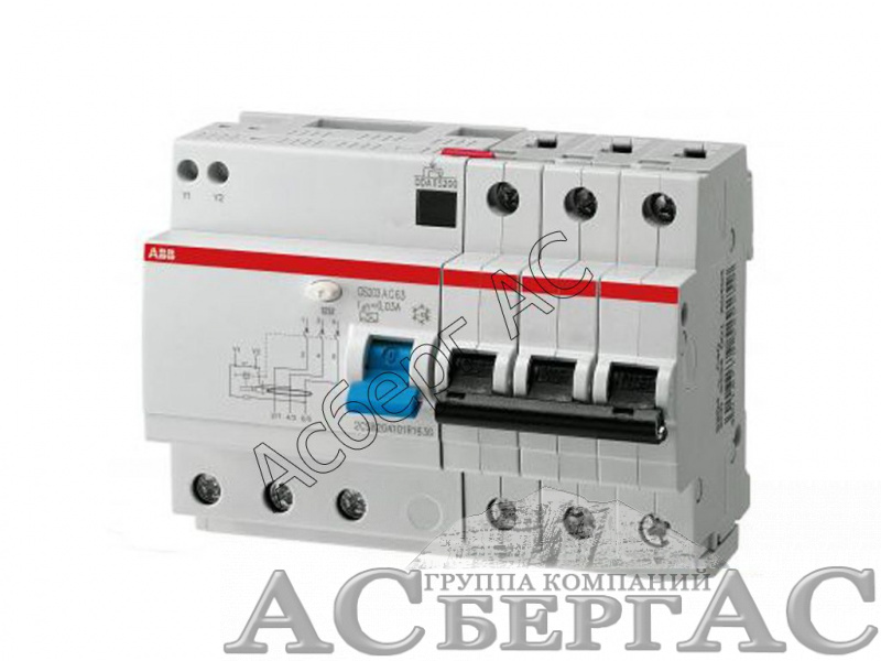 DS203 M C10 AC30 Дифф. автомат 3-полюсный, 10A, 30mA, тип АC, 10kA (хар-ка C) ABB