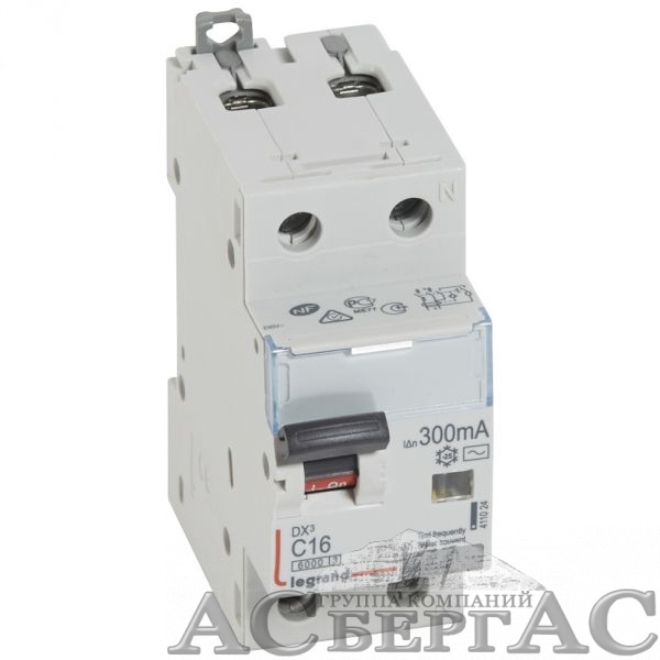 DX3 Дифф. автомат 1P+N, 16A, 300mA, тип АC, 6kA (хар-ка C) Legrand