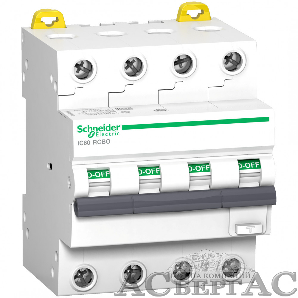 iC60 RCBO Дифф. автомат 4-полюсный, 16А, 6kA, 30mA, тип AC (хар-ка C) Schneider Electric