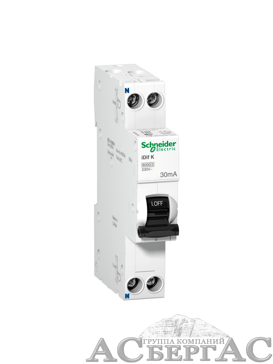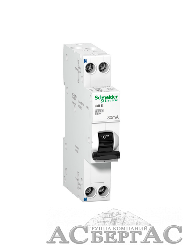 iDif K Дифф. автомат 1P+N, 16A, 6kA, 30mA, тип AС (хар-ка C) Schneider Electric