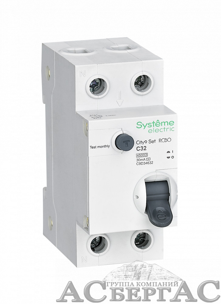 Дифф. автомат 1P+N, 32А 30mA, тип AС, 4.5kA (хар-ка C) City9 Systeme Electric
