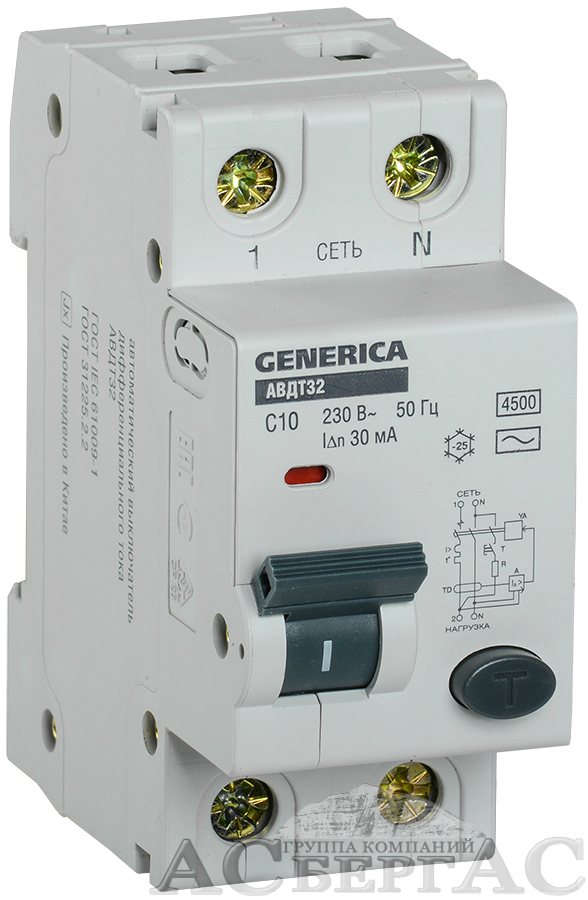 АВДТ 32 Дифф. автомат 1P+N, 10А, 30mA, 4,5kA, тип AC (хар-ка C) ИЭК