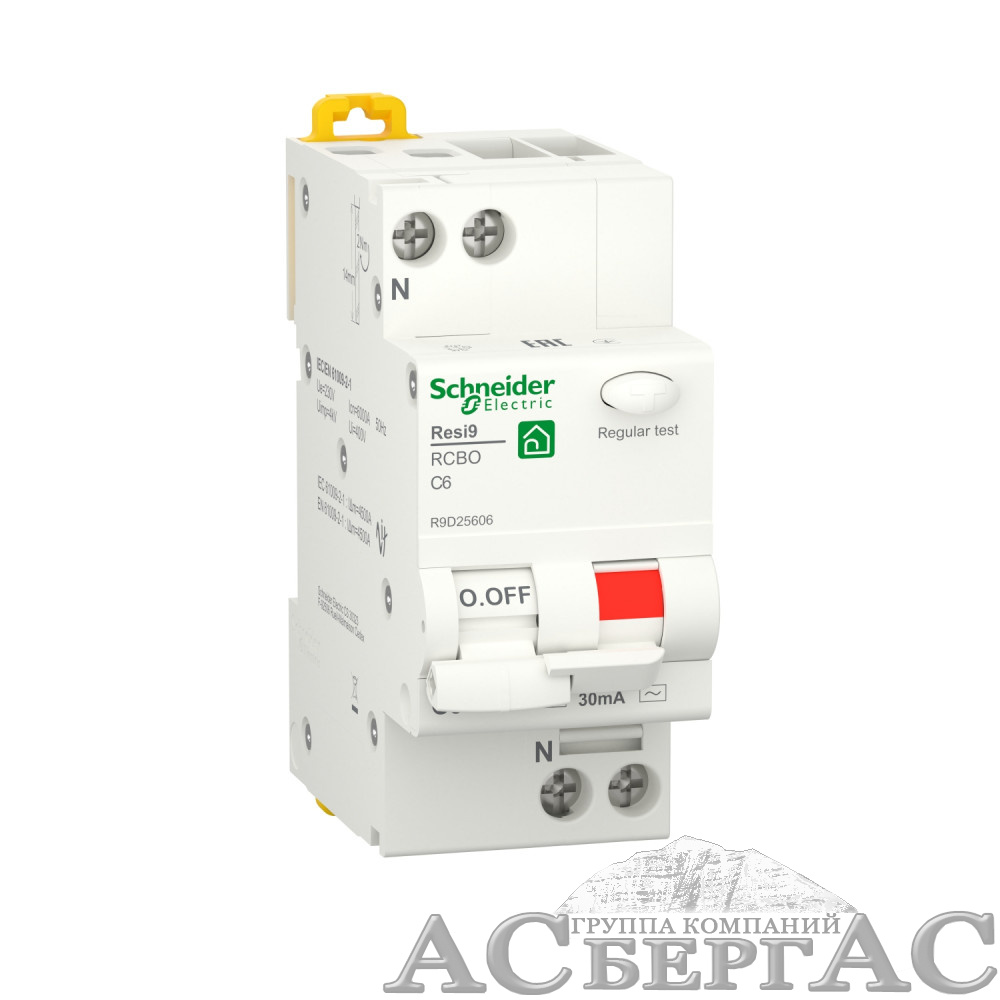 RESI9 Дифф. автомат 1P+N С 6А 6000A 30мА тип AС Schneider Electric