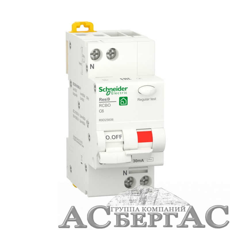 RESI9 Дифф. автомат 1P+N С 6А 6000A 30мА 18mm тип AC Schneider Electric
