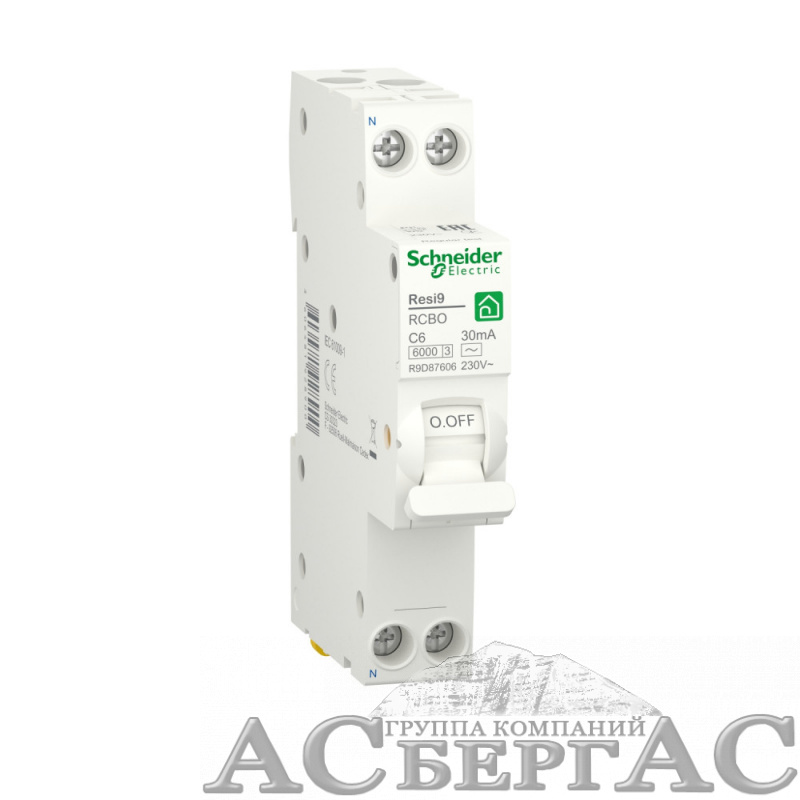 RESI9 Дифф. автомат 1P+N С 6А 6000A 30мА 18mm тип AC Schneider Electric