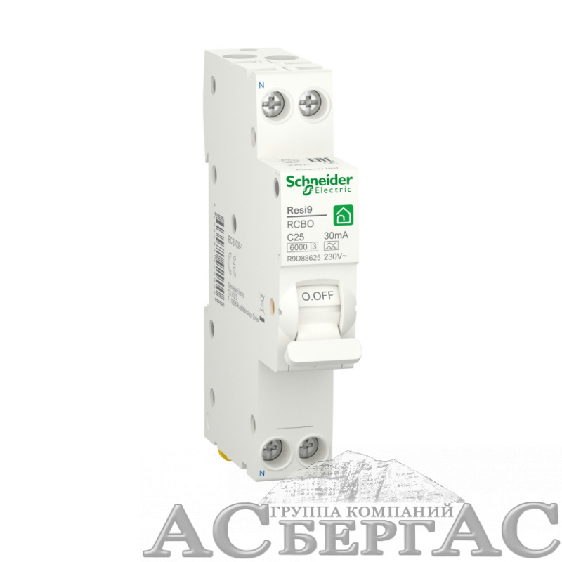 RESI9 Дифф. автомат 1P+N С 25А 6000A 30мА 18mm тип A Schneider Electric