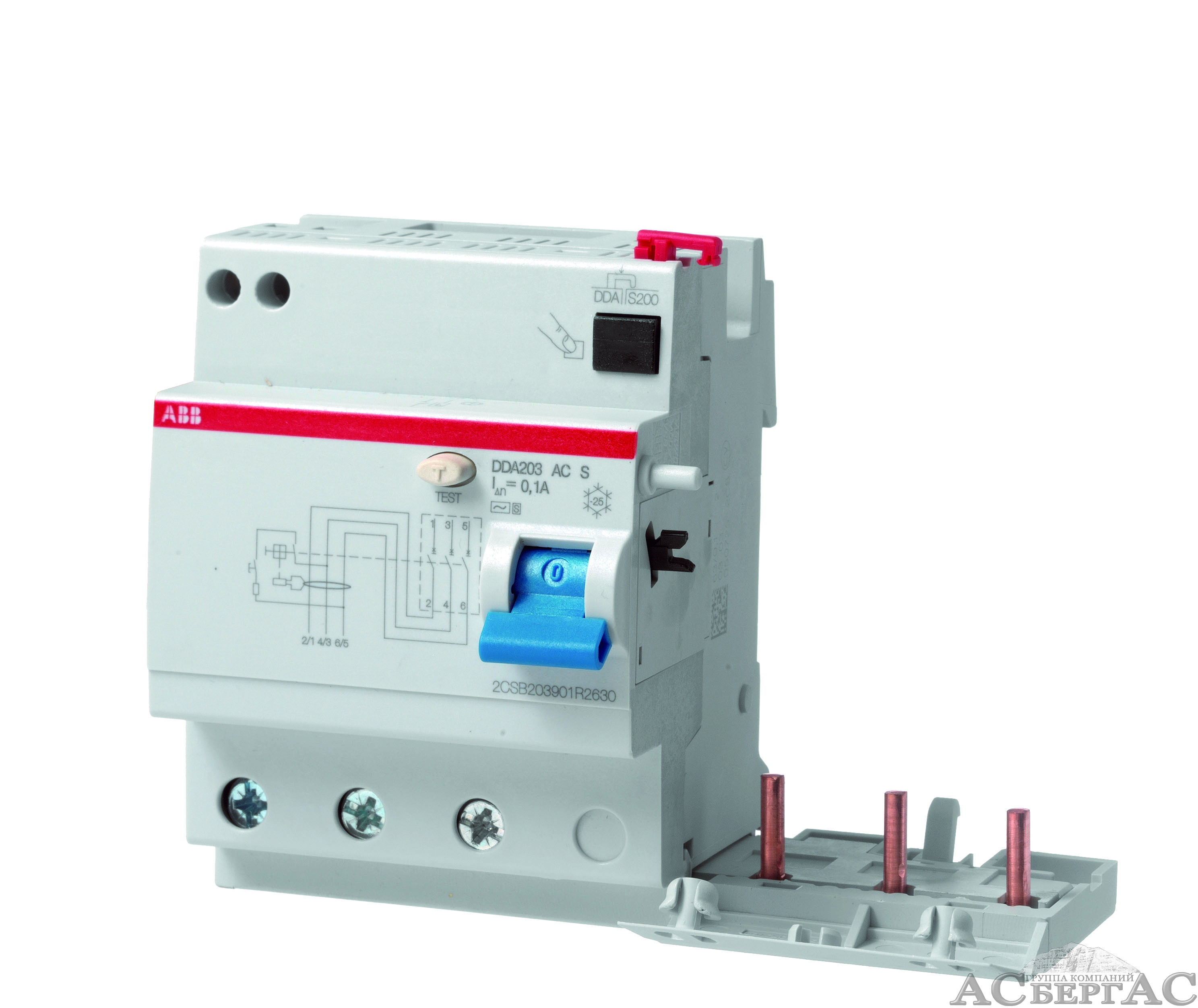 DDA203 AC 63/100 Блок дифференциального тока 3-полюсный, 63A, 100mA, тип АC ABB