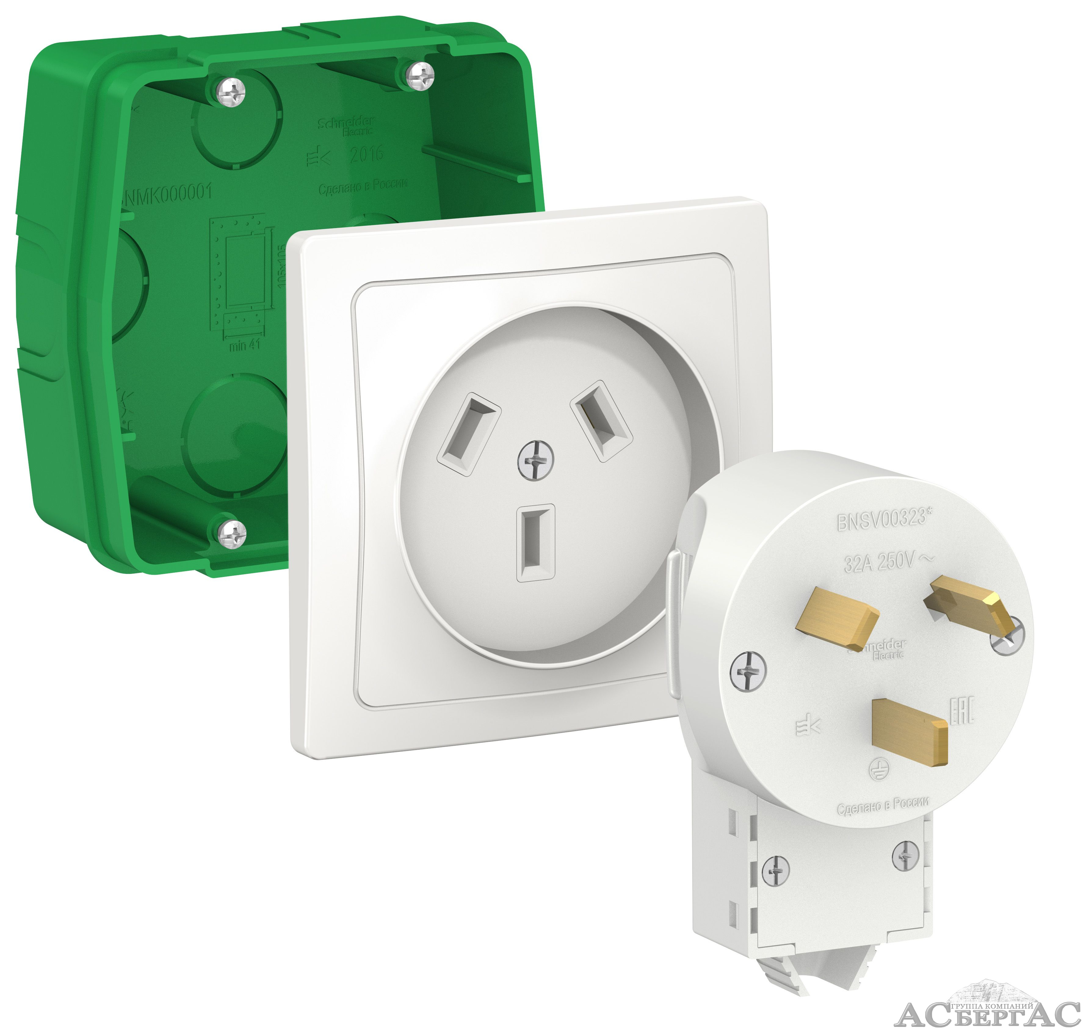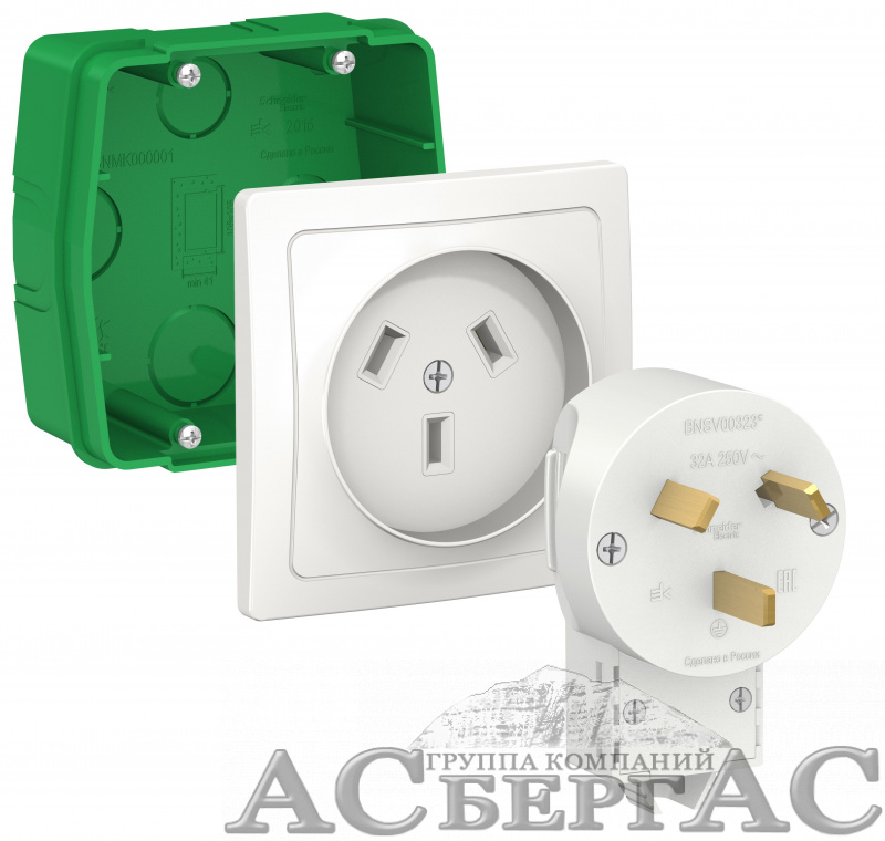 Силовой комплект 32А, 250В: Розетка, вилка, монтажная коробка (белый) Blanca Systeme Electric