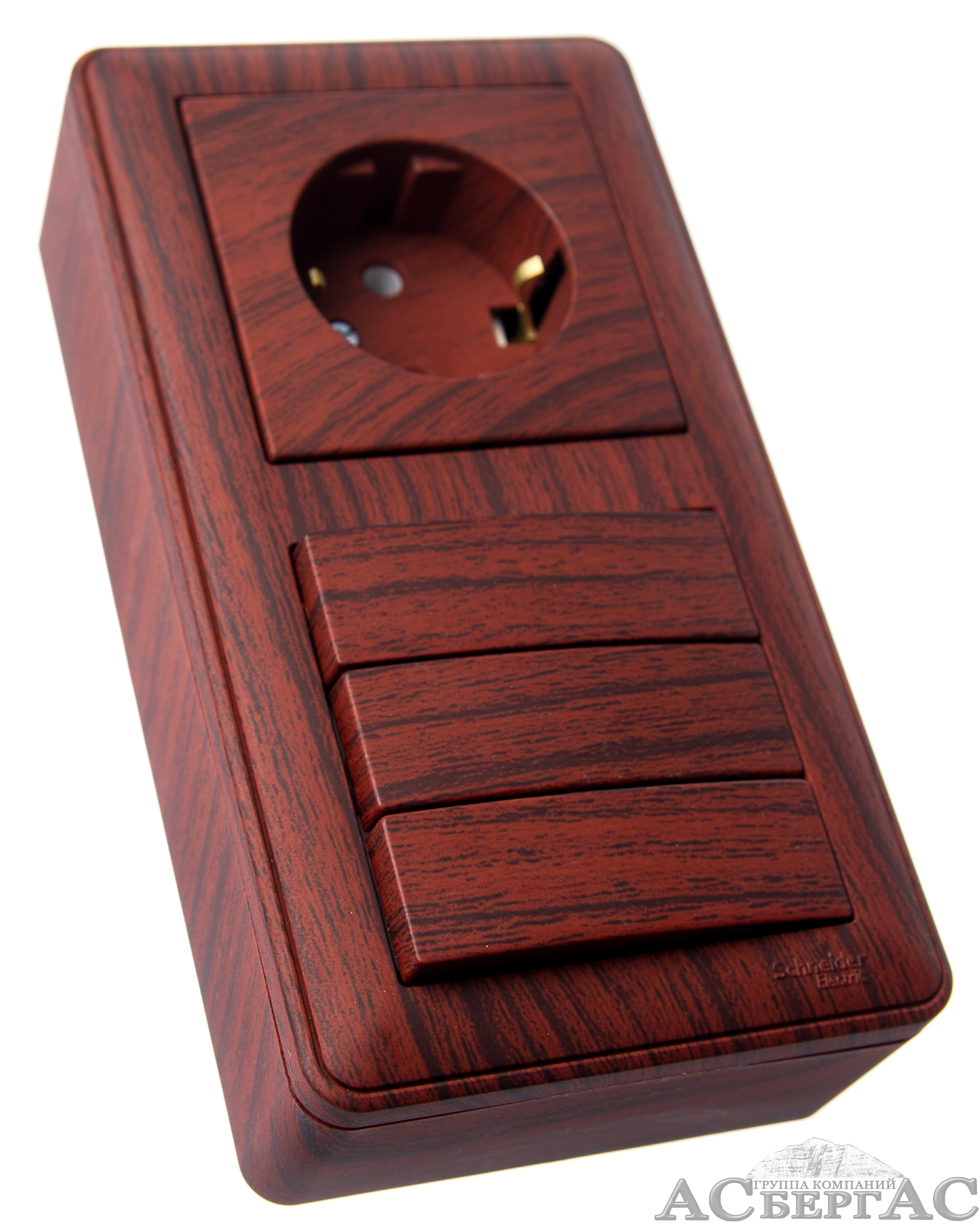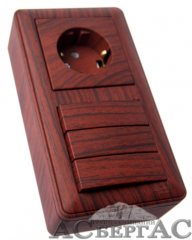 Коробка 2-постовая, подъемная для наружного монтажа с рамкой (мореный дуб) Wessen 59 Schneider Electric
