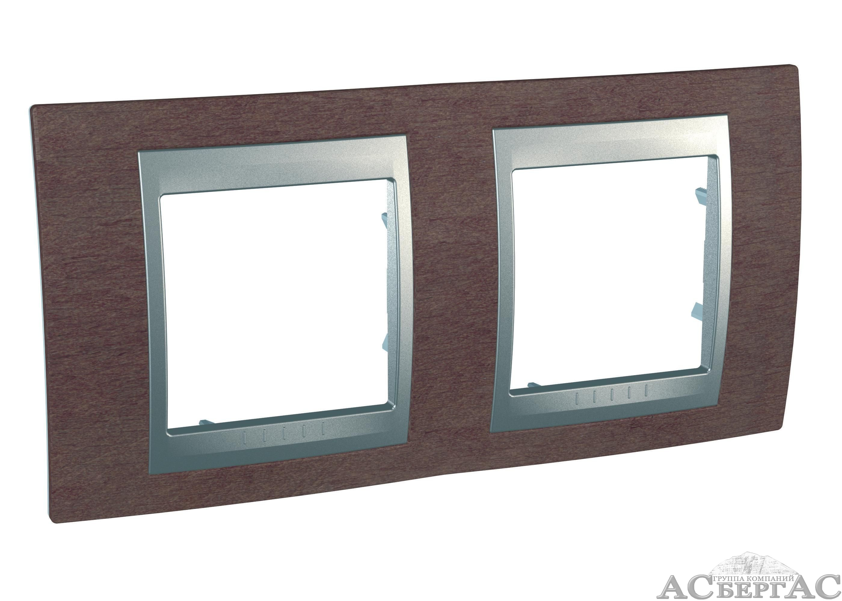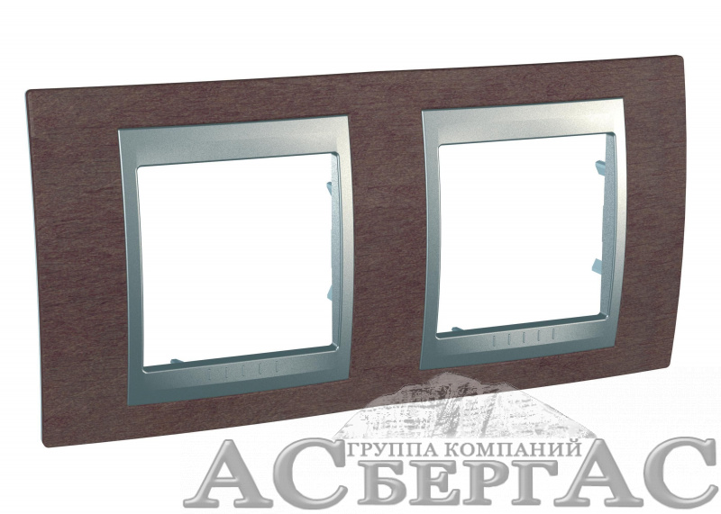 Рамка 2-постовая горизонтальная (алюминий/табачное дерево) Unica Top Schneider Electric